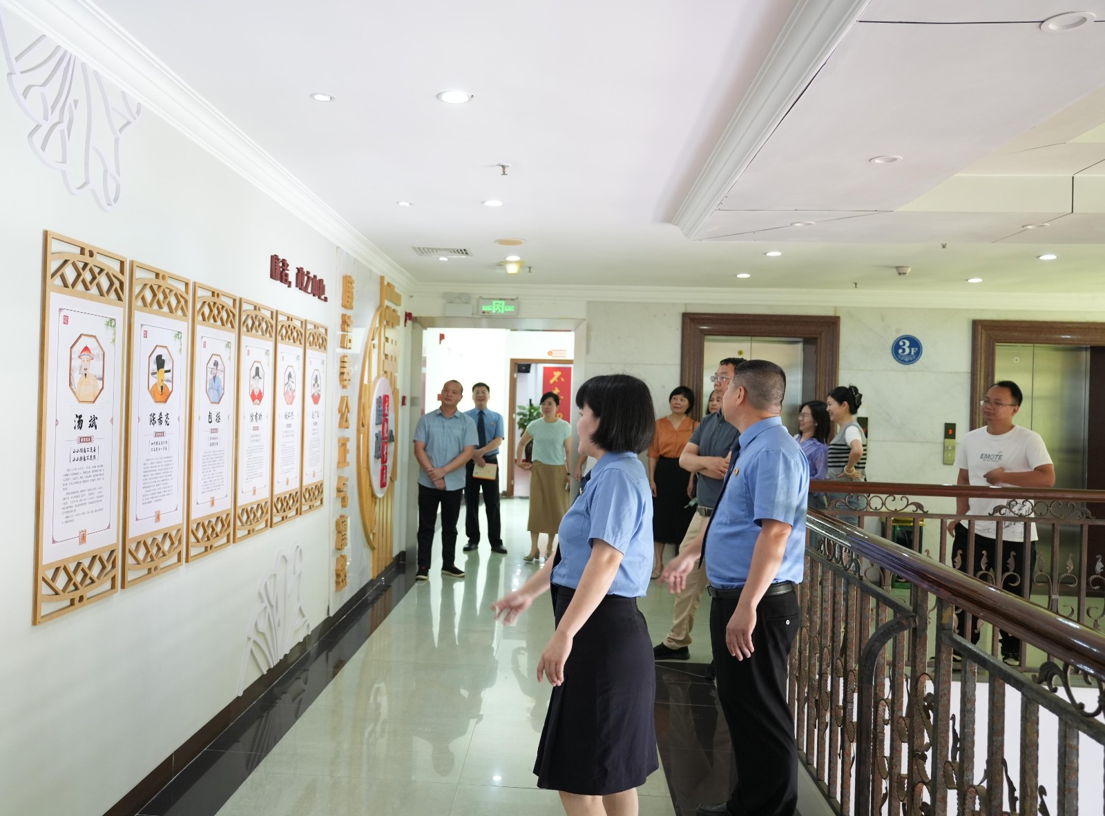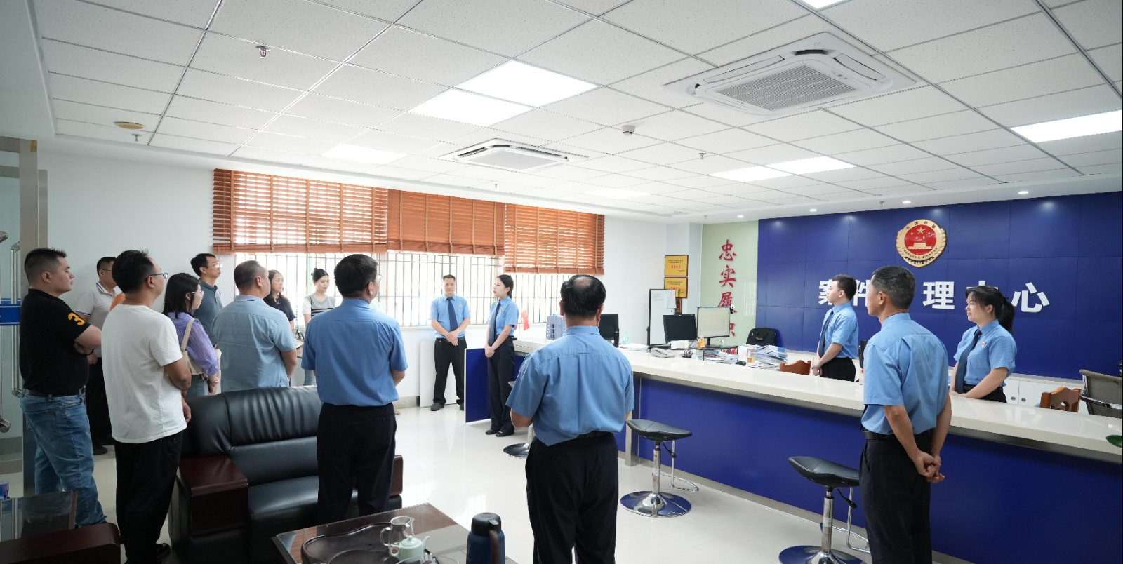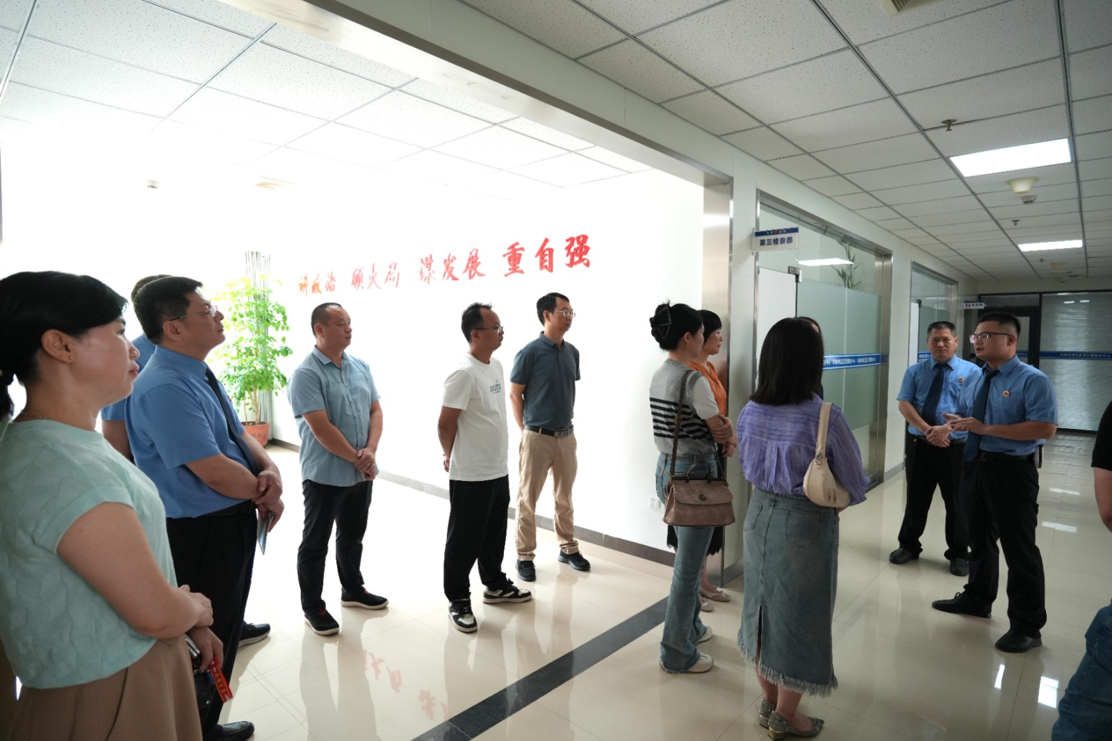 应邀嘉宾在党组副书记、副检察长廖俊洪的引导下,先后参观了12309 检察服务中心、案件管理中心、党建活动中心、廉政文化长廊和职工书屋。在 12309 检察服务中心,检察干警详细介绍了检察机关接待来访群众、受理民事案件等工作流程,让嘉宾们直观感受检察机关如何通过“一站式”服务将民法典的监督实施职能延伸至民生一线。在案件管理中心,嘉宾们近距离了解了刑事案件的受理、流转和监督,以及接待律师阅卷的情况,对检察机关依法履职、保障当事人诉讼权利的工作机制有了更清晰的认识。在党建活动中心、廉政文化廊和职工书屋,丰富的图文资料和荣誉牌匾,生动展现着党建引领检察业务发展的成果,诠释着检察干警坚守法治信仰、追逐检察梦想的坚定决心。