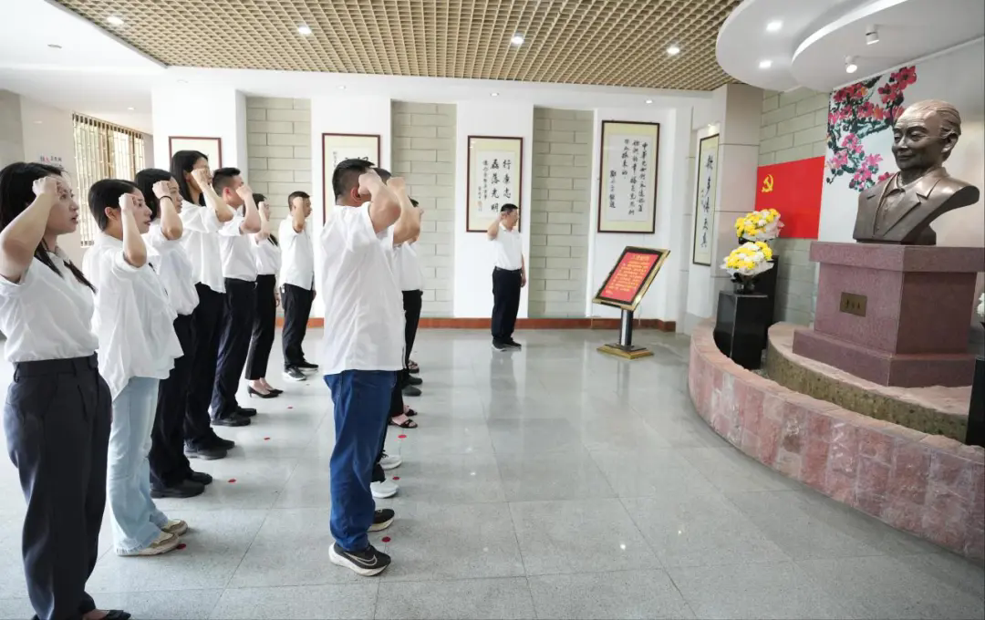 随后,党总支书记廖俊洪带领各党支部书记和优秀党员代表来到坚真纪念馆,大家在李坚真大姐雕像前,紧握右拳,面对鲜红的党旗,齐声宣读入党誓词。宣誓结束后,党员们认真参观了馆内阵列的一件件珍贵的藏品,深刻感悟李坚真大姐身上体现的坚定信念、为民情怀、清廉风骨与担当精神。