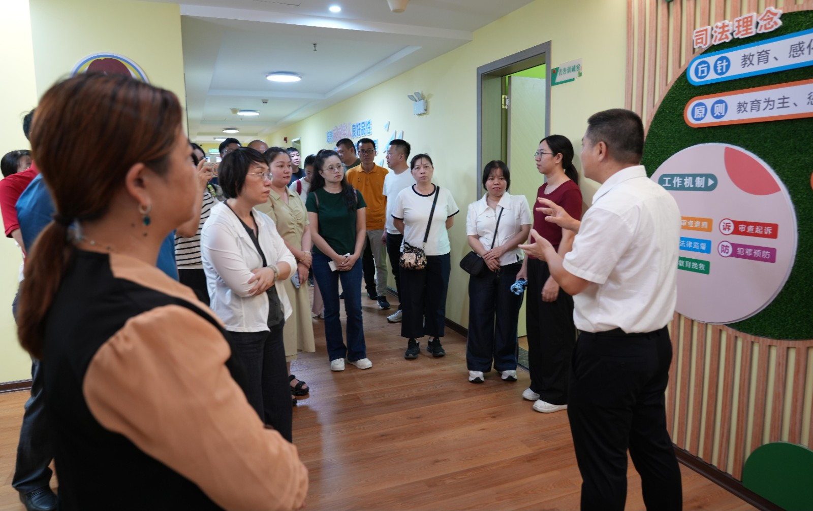 随后,党代表们走进一楼的未成年人检察工作室,参观了法治文化墙、心理疏导室、宣告训诫室等办案场所,聆听了未检干警关于未成年人检察工作的职能以及未检党建工作品牌的介绍,直观全面地了解未成年人检察工作的内容和成效。