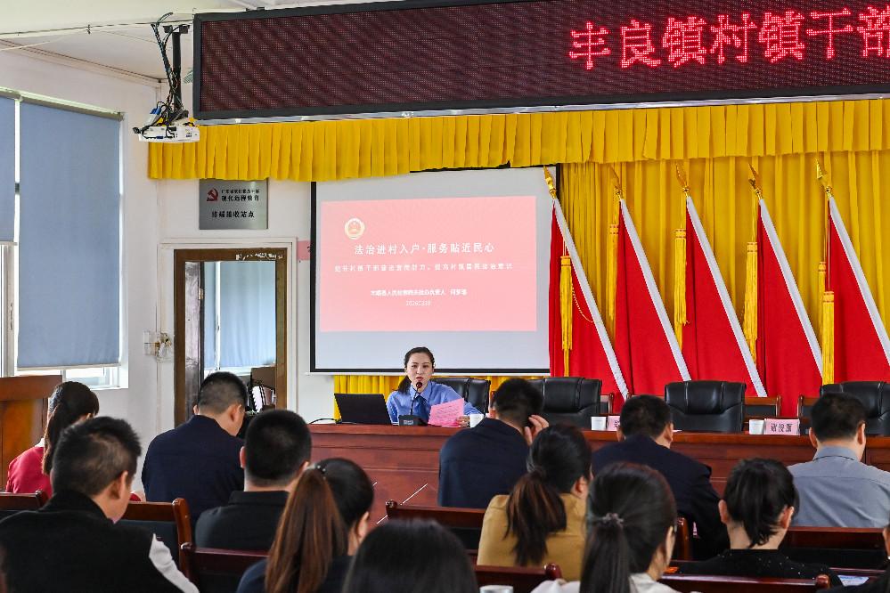 当天上午,县检察院联合丰良派出所为丰良镇平安法治办、司法所、民政、妇联以及各村(社区)妇女主任、治保主任等50余名村镇干部开展专题普法培训。培训课上,何梦瑶检察官围绕乡村常见的法律需求,重点解读了民法典、未成年人保护(特别是预防性侵害)、防范诈骗等法律知识,并通过案例模拟,讲授了在入户普法时沟通与纠纷调解的实用技巧,着力提升镇村干部的普法能力。