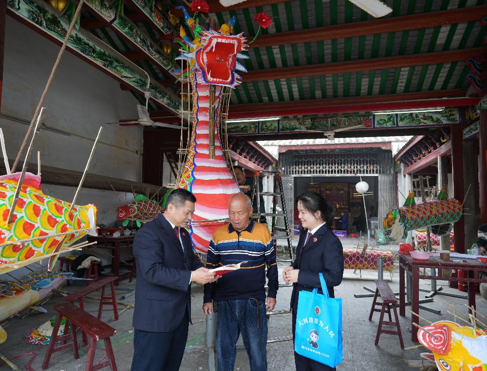 元宵烧火龙,非遗“法”来护——丰顺检察到埔寨镇火龙制作现场普法